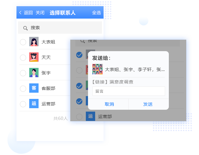 直接調用企業通訊錄,一鍵分享表單,全員協作管理