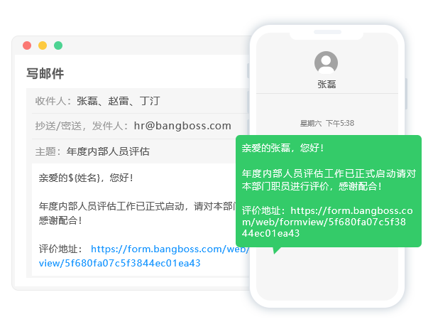 • 郵件、短信、微信等方式一鍵發布,支持統一鏈接和二維碼作答