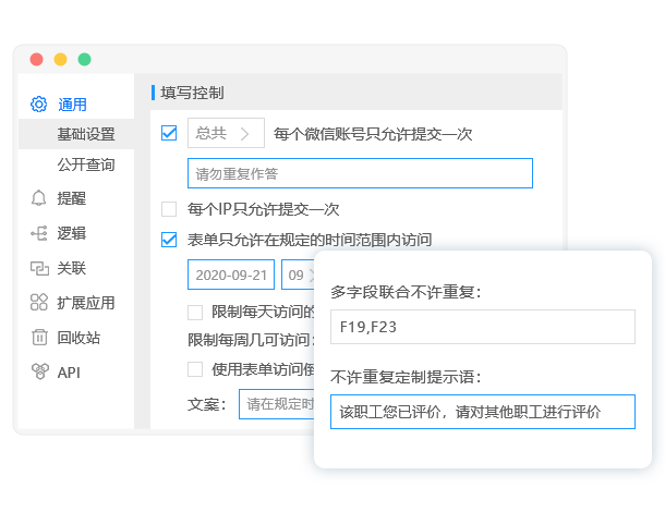 • 支持身份校驗、杜絕重復作答、防作弊等等設置