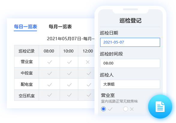 巡檢記錄一覽表式集中展示,符合傳統紙質巡檢記錄查閱習慣