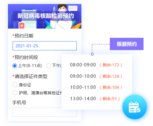 支持分時段限名額預約,合理安排每日檢測人數