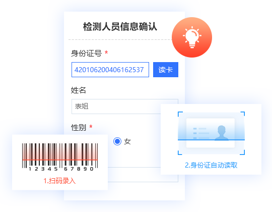 支持掃碼錄入、身份證自動讀取,信息快速識別;