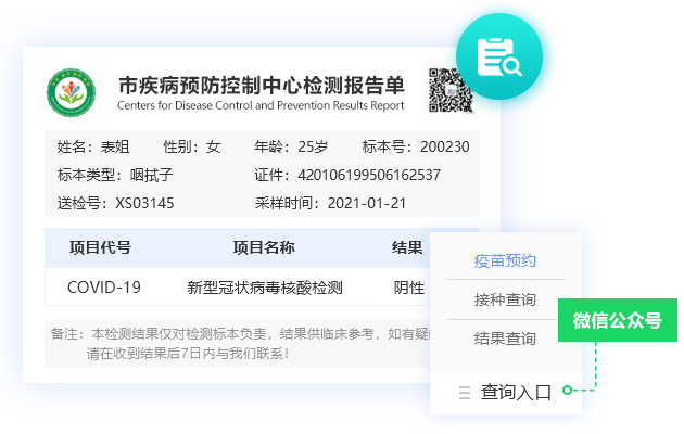 與微信公眾號深度集成,在線查詢報告結果;